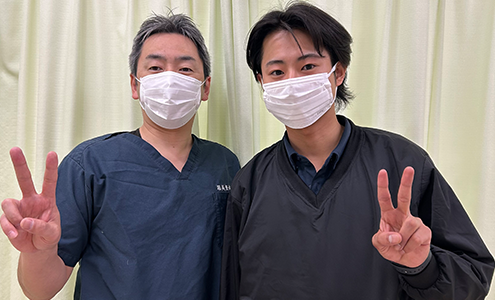 毎朝8時の開院に向けて、朝一でのストレッチを日課にしております。実はヘルニアの持病がありますが、セルフコントロールにて、不自由なく元気に生活できています。自らの経験から腰痛の付き合い方を学び、改善方法や健康維持の大切さを多くの方に伝えたいと考えております。